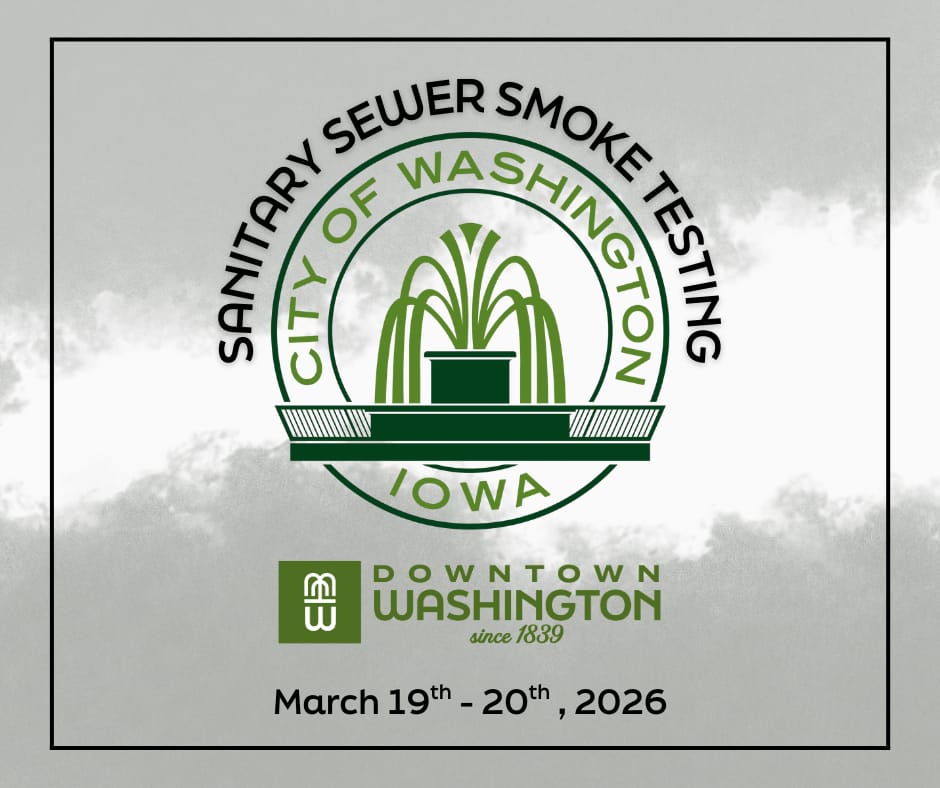 The City of Washington will be conducting sanitary sewer smoke testing March 19th - 20th. See their press release for more info.